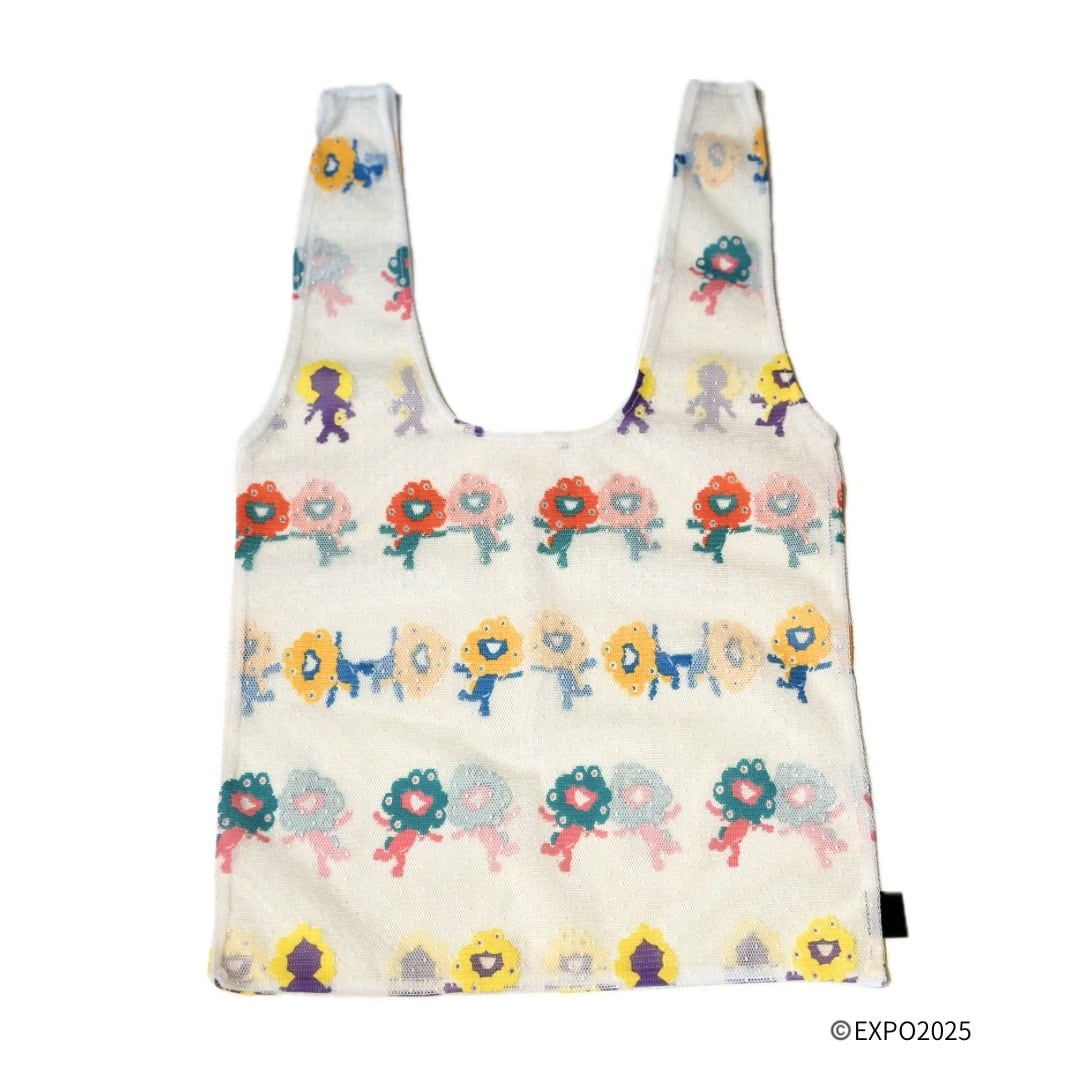 カラフルなミャクミャクが列ごとに同じ色で並んでいて統一感のあるバッグです。